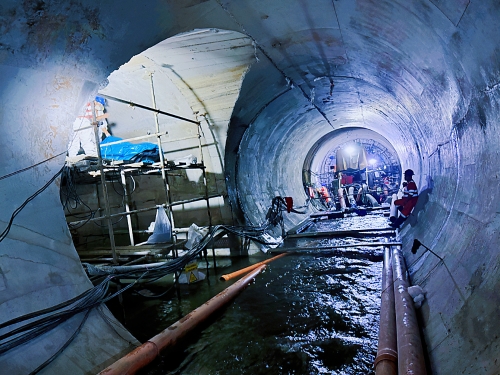 引水隧洞TBM洞段混凝土襯砌共計106倉(總長938米)。項目部自2月6日開始澆築首倉混凝土襯砌,克服了物料長距離運輸、上遊來水及洞內滲水大、襯砌混凝土分散不連續、施工交叉、通道單一等諸多問題。在全體員工的不懈努力下,完成所有混凝土襯砌澆築施工,為項目完工奠定基礎。