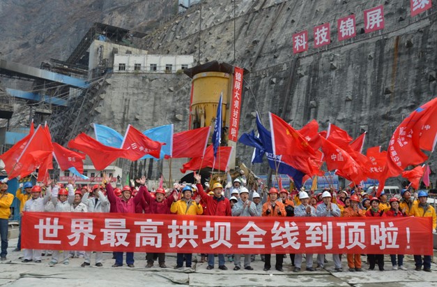 12月23日,世界最高拱壩——雅礱江錦屏一級水電站混凝土雙曲拱壩全線澆築到頂。標誌著錦屏一級水電站建設已攻克了高邊坡、高地應力、深部卸荷裂隙等世界級技術難題,創立了世界壩工技術新的裏程碑。