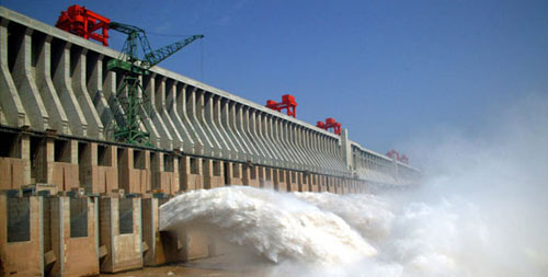 三峽水利樞紐工程泄洪時的場景