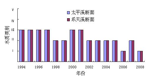圖1 太平溪、樂天溪1994~2008年水質狀況