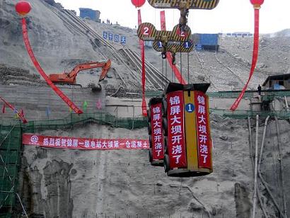 世界最高拱壩--錦屏一級電站大壩開始澆築