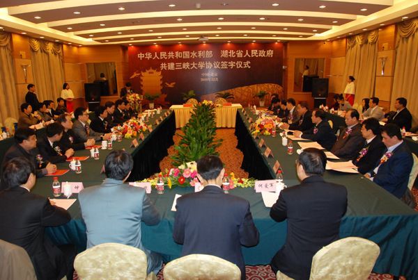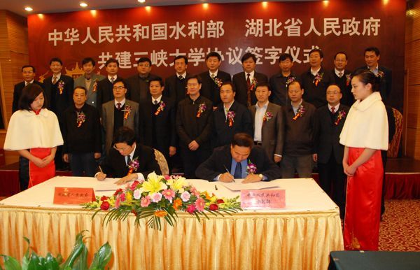 本站訊12月11日,水利部與湖北省人民政府在京簽訂共建三峽大學協議。水利部副部長胡四一、湖北省副省長郭生練,分別代表水利部和湖北省政府在協議上簽字並講話。簽字儀式由湖北省政府副秘書長黃國雄主持。根據協議,雙方將進一步加強對三峽大學的幫扶力度,積極支持學校的師資隊伍建設、人才培養和科學研究工作,並在科研項目立項、博(碩)士學位點建設、省級特色與優勢學科建設、重點學科和重點實驗室建設、教學改革與教學基本建設、高層次拔尖人才引進等方麵予以重點支持,使其成為我國水利人才培養和職工教育培訓的重要基地。