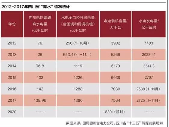 國家電網四川省電力公司此前對外披露的數據顯示:2012-2016年,四川電網水電“棄水”電量分別為76億、26億、97億、102億和142億千瓦時。