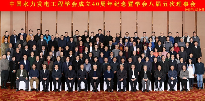 2020年11月26日,188BETApp 成立40周年紀念暨學會八屆五次理事會在北京召開。大會總結回顧了水電學會40年來的發展曆程和成就,團結凝聚廣大水電科技工作者,以中共中央關於製定“十四五”規劃和2035年遠景目標的建議為指引,對未來發展獻計獻策,助力水電清潔能源高質量發展。
