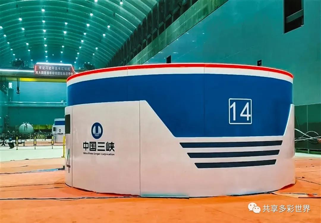 由哈電供貨的9—16號機組安裝在白鶴灘右岸電站地下廠房中,此為2021年6月28日上午由哈電供貨的14號機組投產發電現場。
