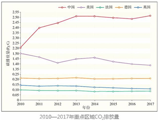 遺憾的是,後來到2012年前後煤炭行業出現了嚴重的產能過剩,煤價出現大幅的下跌。煤電企業的利潤大增,新建燃煤電廠的積極性重新高漲。再加上2014年中央審批權下放,各地新的燃煤電廠建設規模嚴重失控。以至於到2016年我國由於全國性大規模的“三棄”(棄水、棄風、棄光),終於壓製住了我國可再生能源快速大發展的良好勢頭。風電的年新增裝機從最高的年份4千多萬KW,猛跌到1千多萬;水電的投資和年新增發電量,都比最高峰時下降了90%左右。社會新增的電力需求的市場份額,幾乎完全都被煤電奪回。所造成的最後結果,自然就是我國的碳排放量從2017年之後,重新恢複增長(如下圖)。