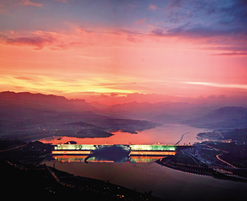 6月30日傍晚,世界十五大人造奇跡之一的三峽大壩在晚霞的襯托下顯得瑰麗多彩、氣勢恢弘。本報通訊員 望 超 攝