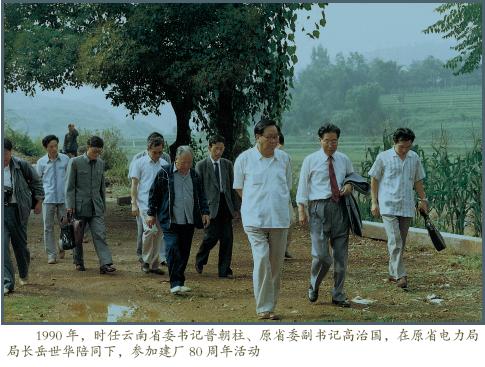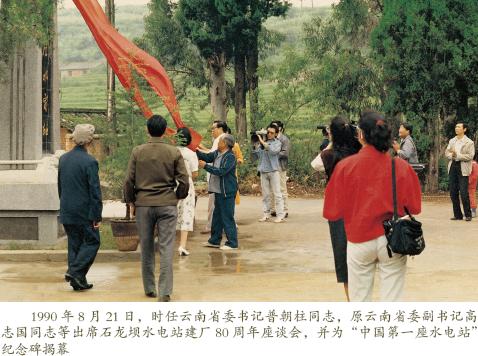 8 月21 日,石龍壩發 電廠舉行建廠八十周年紀 念會, 省委書記普朝柱、 市委書記王廣憲、代市長 王任才、副市長自國瑞、 原省委副書記高治國、雲 南省電力工業局黨組書記、 局長朱誌強、副局長謝昆 生、局工會主席汪明傳及 兄弟單位領導共計135 人 出席了紀念會,省委書記 普朝柱及原省委副書記高治國共同為“中國第一座水電站”紀念牌揭幕。