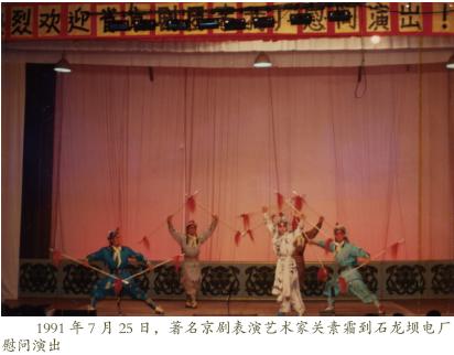 1991 年7 月25 日, 著名京劇表演藝術家關素霜到石龍壩電廠慰問演出。