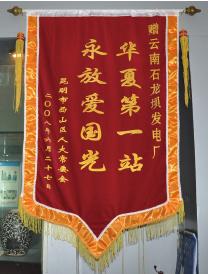 6 月27 日,昆明地區十四縣人大工作會議第四十七次會議的與會代表130 餘人在昆明 市西山區人大常委會原副主任李永芬、副主任孟建功、孫德金帶領下到石龍壩發電廠考察 參觀, 向石龍 壩發電廠贈送 了“ 華夏第一 站, 永放愛國 光”的錦旗一 麵。