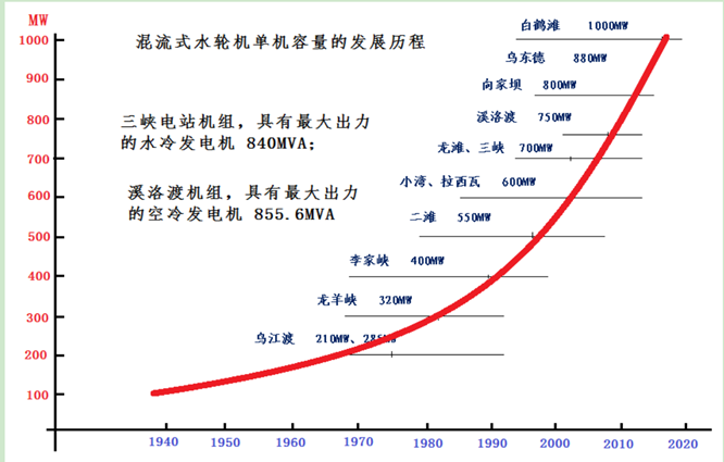 圖5大型混流式水輪發電機組的發展進程