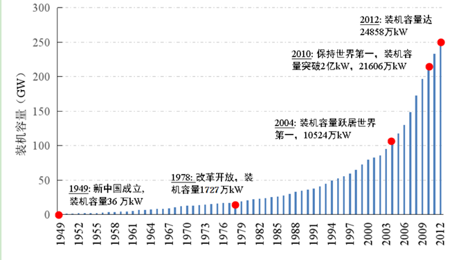 圖1十八大之前全國水電裝機容量的變化