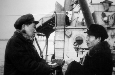 在三峽船尾半橢圓形大艙裏,有關領導把一位當地幹部帶進來引見給毛澤東:“主席!這位是萬縣地委書記。”毛澤東十分客氣地從沙發上站起來招呼來客。黑黑胖胖的中年來客急忙趨步上前,用雙手緊握著毛澤東伸出的大手,熱忱地問候:“毛主席!您好!”