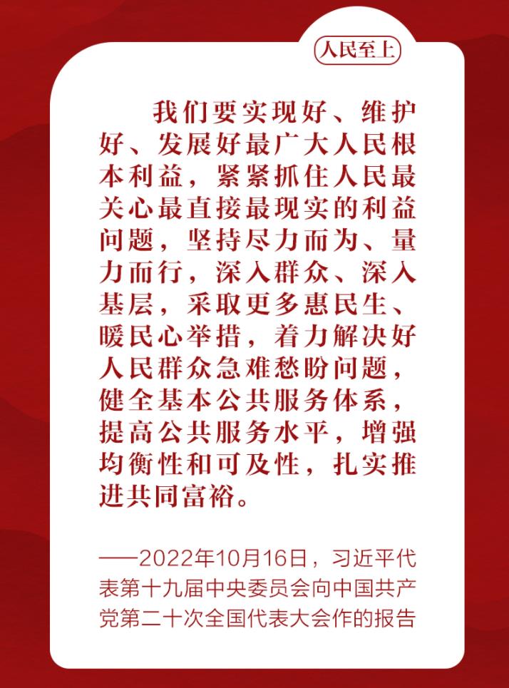 “江山就是人民,人民就是江山。”習近平總書記在黨的二十大報告中強調,治國有常,利民為本。為民造福是立黨為公、執政為民的本質要求。必須堅持在發展中保障和改善民生,鼓勵共同奮鬥創造美好生活,不斷實現人民對美好生活的向往。