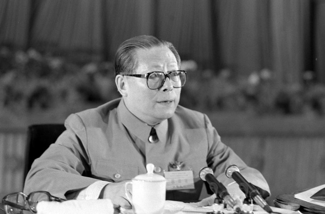 1989年6月23日至24日,中國共產黨第十三屆中央委員會第四次全體會議在北京召開。這是江澤民同誌在會上講話。新華社發