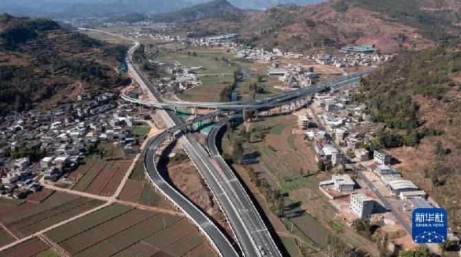 這是11月25日拍攝的沿江高速即將通車的會東至會理段局部(無人機照片)。攝影:新華社記者胥冰潔