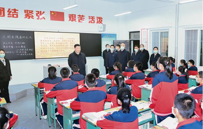 2022年10月26日至28日,中共中央總書記、國家主席、中央軍委主席習近平在陝西省延安市、河南省安陽市考察。這是26日下午,習近平在延安市延安中學棗園校區高一(2)班教室,同師生親切交流。 新華社記者 燕雁/攝