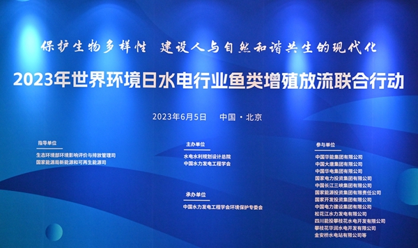 2023年6月5日,由水電水利規劃設計總院、188BETApp 聯合主辦,“2023年世界環境日水電行業魚類增殖放流聯合行動”開幕式在北京正式舉辦。本次活動主題為“保護生物多樣性,建設人與自然和諧共生的現代化”,開幕式由水電水利規劃設計總院副院長顧洪賓主持,來自華能集團、大唐集團、華電集團、國家電投集團、三峽集團、國家能源集團、國家開發投資集團、中國電建集團及各集團下屬有關單位和其他水電開發建設單位代表共2000餘人以“現場+雲互動”形式參加開幕式和放流活動。