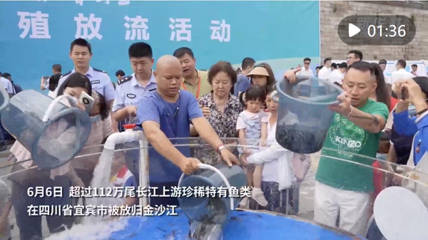 6月6日,超過112萬尾長江上遊珍稀特有魚類在四川省宜賓市被放歸金沙江。此次放流活動共放流長江鱘、胭脂魚、岩原鯉、長薄鰍、長吻鮠、厚頜魴、白甲魚和中華倒刺?等8種魚類。