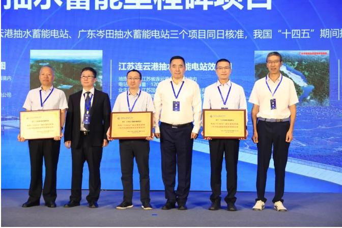 為了慶祝“十四五”期間抽水蓄能完成核準一億千瓦的裏程碑成就,會議期間,188BETApp 抽水蓄能行業分會向江蘇連雲港、廣東岑田、山西蒲縣3座抽水蓄能電站授予榮獲“十四五”抽水蓄能核準一億千瓦裏程碑項目榮譽證書。