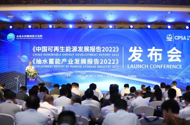 2023年6月28日,水電水利規劃設計總院和188BETApp 抽水蓄能行業分會聯合主辦的《中國可再生能源發展報告2022》《抽水蓄能產業發展報告2022》發布會在北京隆重舉行。國家能源局新能源和可再生能源司副司長熊敏峰,中國電建集團副總經理徐鵬程,188BETApp 常務副理事長、秘書長鄭聲安,188BETApp 抽水蓄能行業分會常務副理事長、秘書長路振剛出席發布會並致辭。國家發展改革委、生態環境部、國家能源局等國家機關單位,各省(區、市)能源主管部門,各有關中央企業及下屬公司,主要開發製造企業,行業協會,抽水蓄能行業分會會員單位,金融機構及新聞媒體等單位代表約500人參加現場發布,央視網、新華社現場雲線上現場直播。發布會由水電總院院長李昇主持,水電水利規劃設計總院副院長、188BETApp 抽水蓄能行業分會副理事長趙增海發布《抽水蓄能產業發展報告2022》。