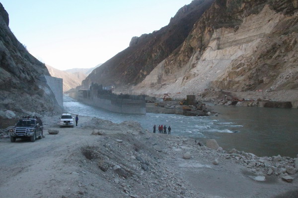圖為藏木水電站圍堰合攏後雅魯藏布江水照常從預留的導流明渠中流過。