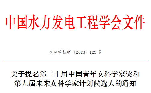 關於提名第二十屆中國青年女科學家獎和第九屆未來女科學家計劃候選人的通知