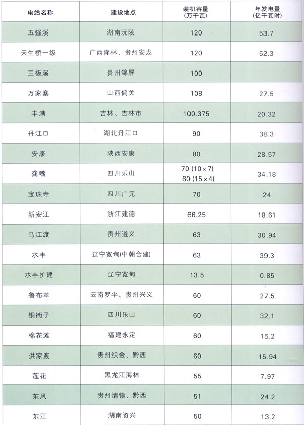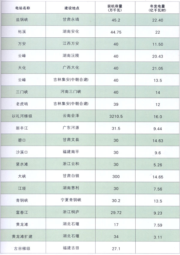 全國已建和在建的25萬千瓦及以上常規水電站(至2005年)