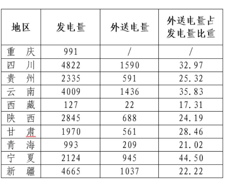 表4 西部省份電網外送電量比重