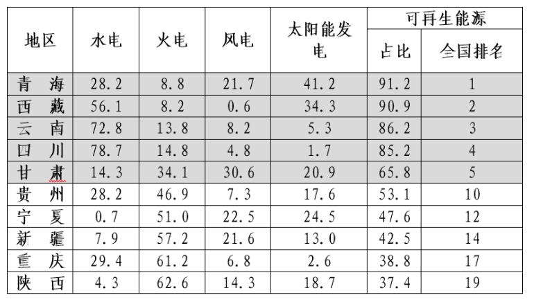 表2 2022年西部省份發電裝機結構(單位%)
