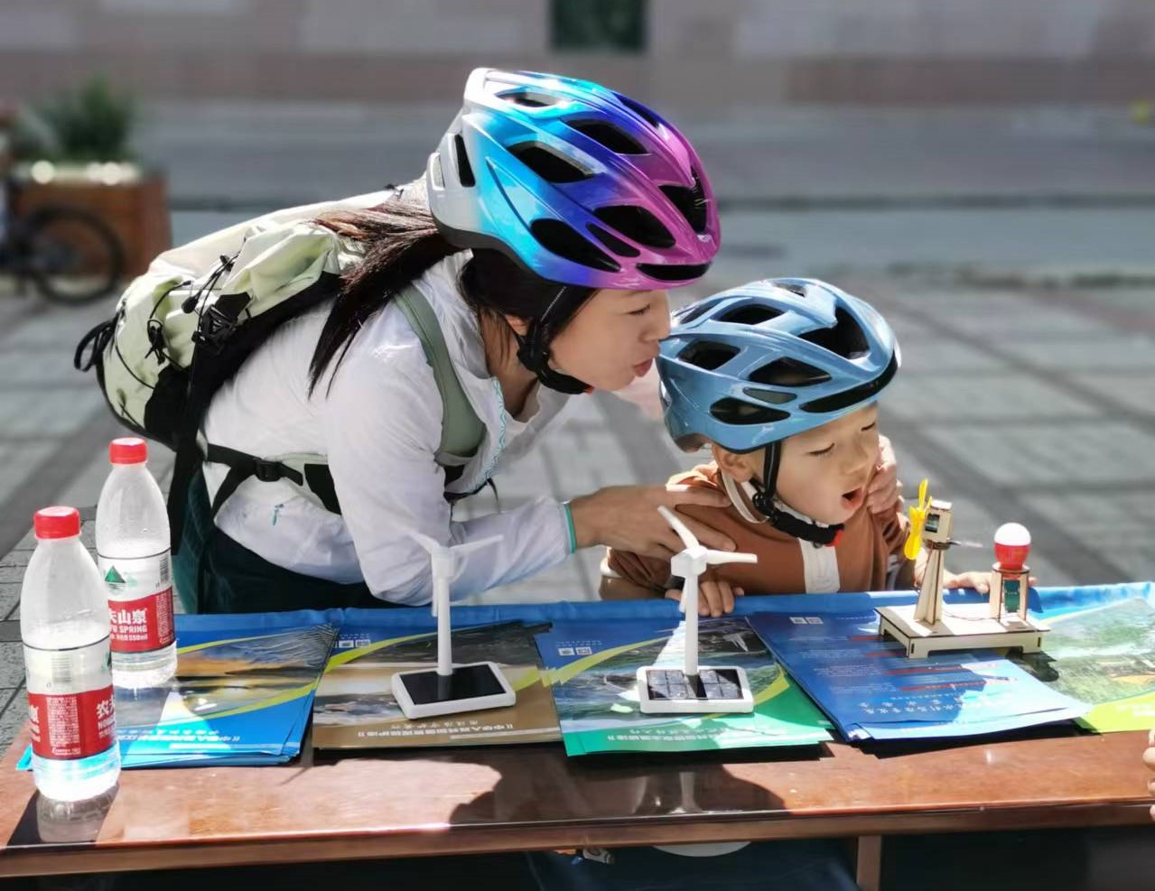 互動體驗區成為了孩子們的樂園。他們看著誌願者安裝的太陽能小車,感受著陽光轉化為動力的神奇;嚐試操作水力發電模型,感知水能轉換電能的奇妙;風力發電模型讓孩子們領略到風能的魅力。孩子們與誌願者互動不斷,在這裏,孩子們的好奇心得到了滿足,對清潔能源的熱愛也在心中悄然生根發芽。