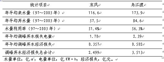 烏江渡水電站、東風水電站是烏江梯級滾動開發的兩座母體電站,首台機分別於1978年、1994年投產,兩電站單獨運行,呈現出水量利用率低、調峰棄水損失電量大的明顯特點,統計1997~2003年,兩電站年徑流利用率不到60%,調峰棄水損失電量每年約4.0億KW•h,7年經濟損失共計約6億元左右,具體統計數據見下表: