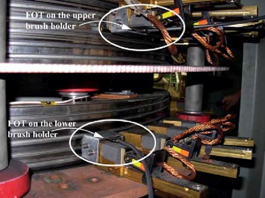 兩隻 (2) FOT光纖溫度傳感器安裝於23號機組上下兩個刷架上。 見圖8
