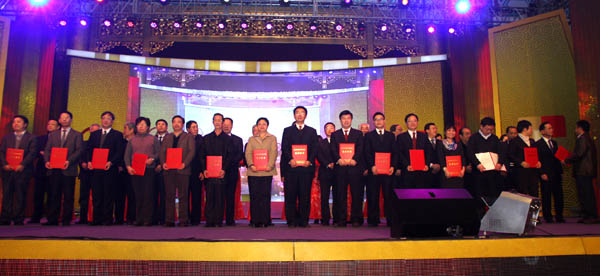 出席2012年中國水電新春聯誼會的領導為獲得2011年度水力發電科學技術獎的獲獎者和獲獎單位代表進行頒獎。