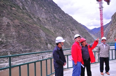 圖1、猴子岩水電站建設者向西南水電行記者和專家介紹情況