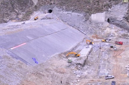 去年的2011水電萬裏行考察期間,猴子岩水電站尚未被核準。2011年11月16日,猴子岩電站正式開工建設。目前,導流隧洞已開始運用,上遊圍堰已基本建成正在進行防滲施工,壩肩開挖已經就緒,地下廠房的開挖也已經完成第一層。等待下遊圍堰建成後,具有40至80米深覆蓋層的壩基開挖將正式開始。隨後將開始223米高的麵板堆石大壩的填築。