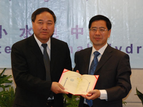 胡四一為新當選國際小水電組織協調委員會委員邢援越頒發聘書