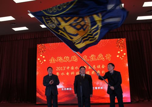 大會舉行了會旗交接儀式,中國水力發電學會秘書長李菊根先生(中)主持了會旗交接儀式。