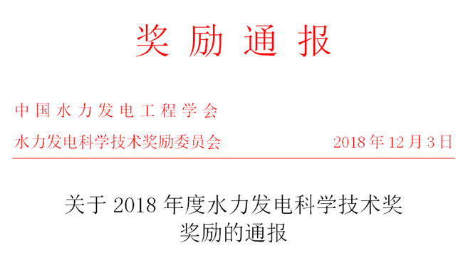 經水力發電科學技術獎勵委員會的審核批準,決定對2018年度水力發電科學技術獎獲獎項目(共36項)給予獎勵並通報表揚。